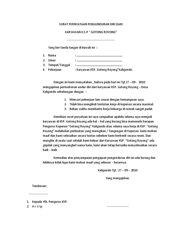 Namun bukan hanya itu, anda juga bisa mengajukan surat permohonan kepada instansi lain ataupun pihak lain. Surat pengunduran diri kerja atau resign letter adalah surat pernyataan bahwa seseorang mengundurkan diri dari pekerjaannya dengan suatu alasan beberapa prosedur yang ditetapkan adalah pengajuan surat pengunduran diri ini harus dilayangkan sebulan dari tanggal yang ditentukan. Isi formulir pengajuan kpr di sini. Contoh surat yang pertama adalah contoh surat resign yang umum dilakukan oleh banyak download contoh surat pengunduran diri.doc. Sebagai salah satu jenis surat resmi, teknik penulisan surat pengajuan tentu berbeda dengan surat.