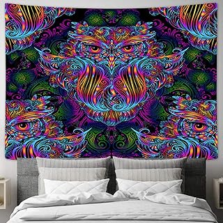 Jawo psychedelic owl tapestry, trippy forest line art tapestry wall hanging for bedroom, moon animal bird blacklight tapestry home decor (60 w x 40 h) 4.6 out of 5 stars 376.